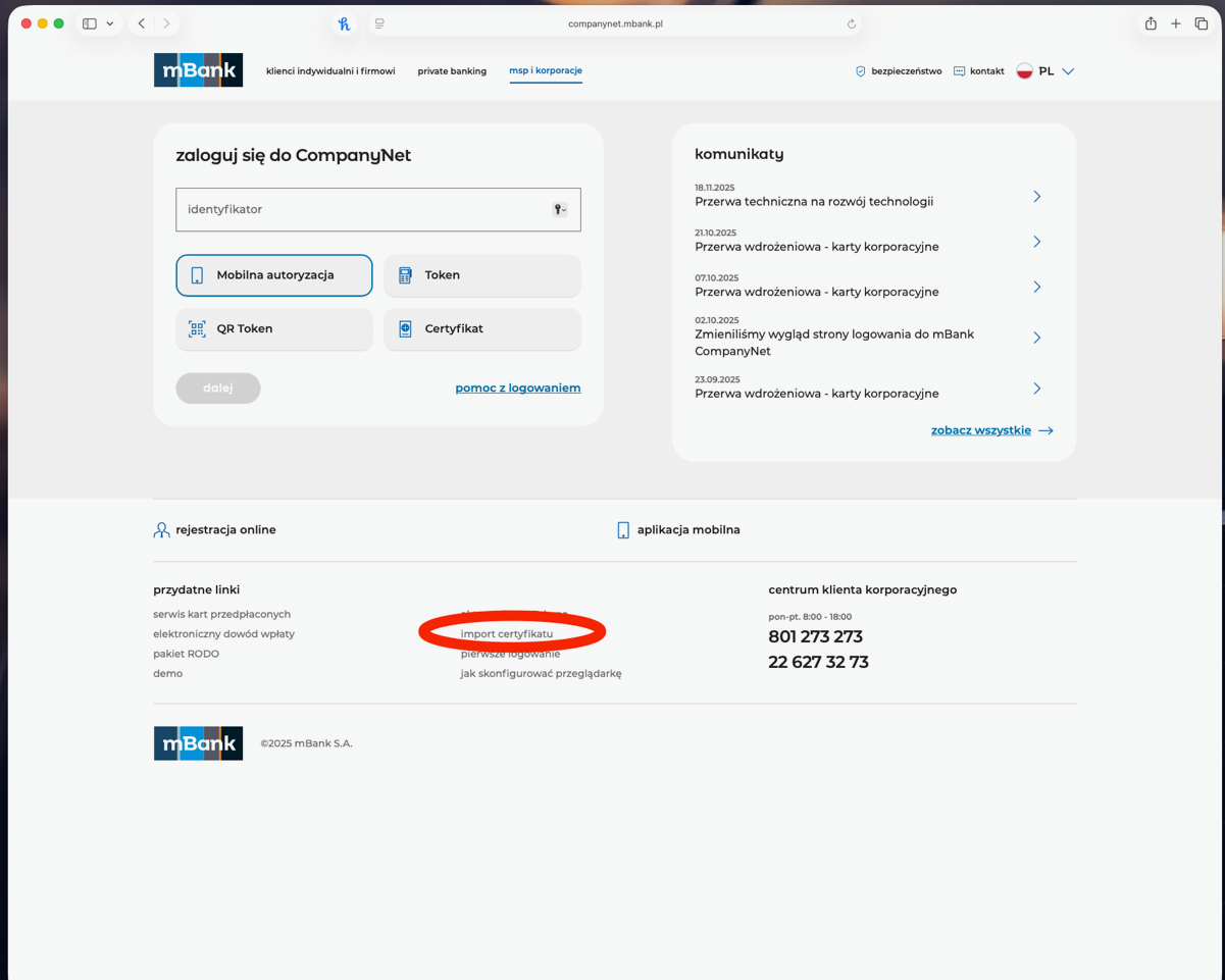 Do niedawana odbywało to się przy użyciu tokena sprzętowego, jednakże od 2023 wprowadziliśmy modyfikację umożliwiającą autoryzację przez certyfikat (certyfikat musi być zarejestrowany w aplikacji CompanyNet).