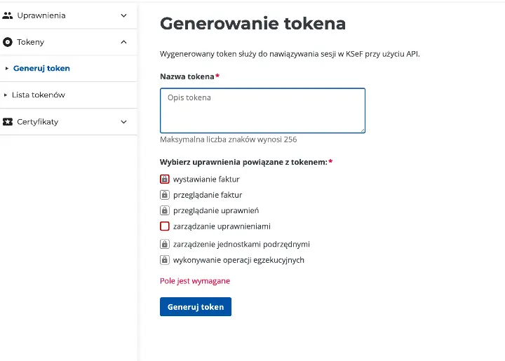 Tylko czemu nie można wygenerować tokenu z uprawnia do wystawiania faktur?