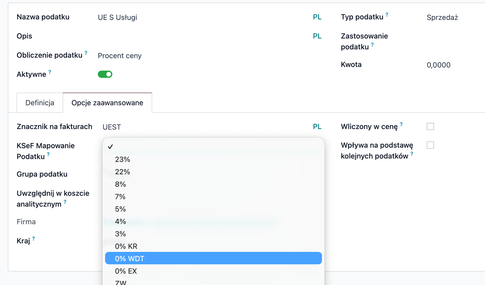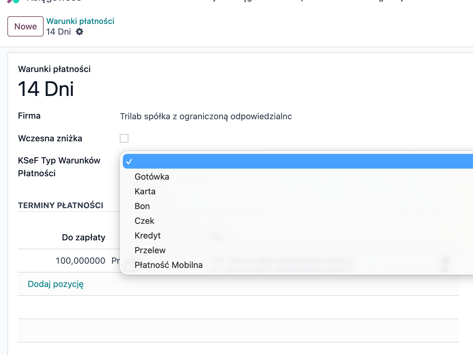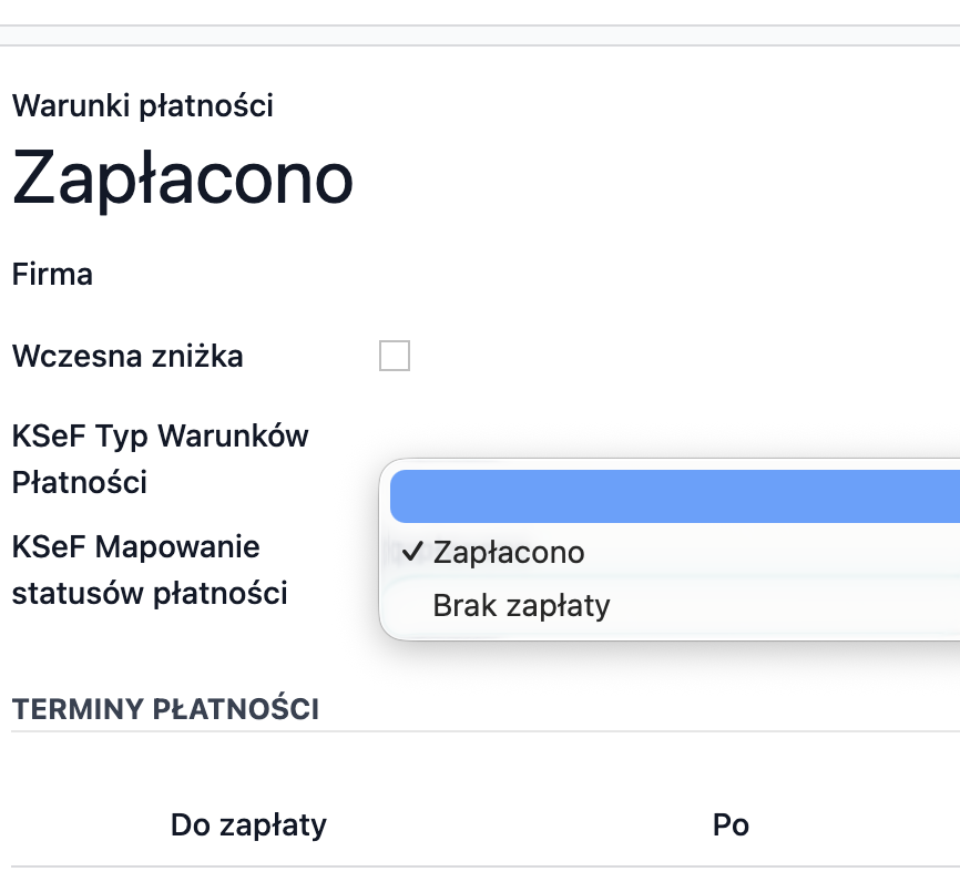 Mapowanie kodów podatków i warunków płatności na słowniki z KSEF