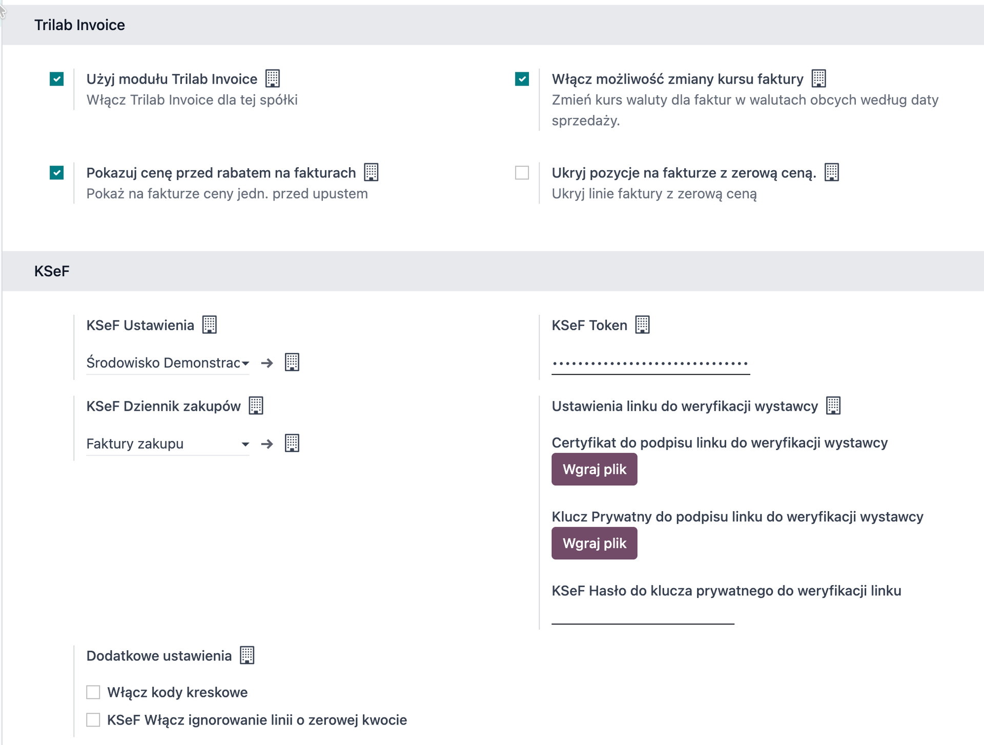 g. KSeF Włącz ignorowanie linii o zerowej kwocie -> opcja braku wysyłki do KSEF takich pozycji - faktury analogiczna do podobnej opcji co o wydruku pozycji z ceną zerową (np pod techniczne naliczenie KWS) z modułu Trilab Invoice