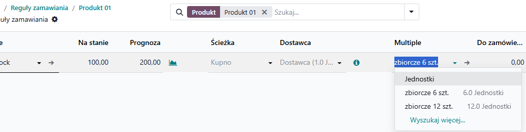 Pole wielokrotności zamówienia (Multiple Qty) jest automatycznie pobierane z opakowań zakupowych.