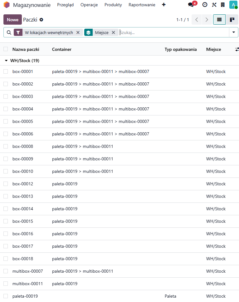 System umożliwia teraz rejestrowanie paczek znajdujących się w innych paczkach, np. paczek umieszczonych na palecie.