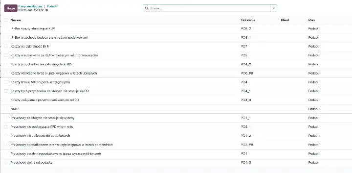 Naszym zdaniem drugie podejście jest dużo lepsze, na tym bazują inne nasze raporty (jak raport pod CIT) gdzie w dedykowanym planie analitycznym (np. Podatki) dodawaliśmy konto analityczne NKUP. Teraz nasz drogi rząd rozszerzył to na pełną gamę znaczników (czyli nie mamy już NKUP dla przychodów i kosztów, mamy PD4 i PD1):