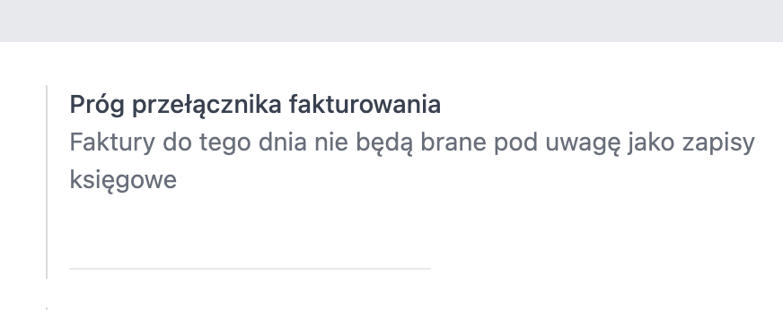 Ustawienie progu fakturowania powoduje anulowanie wszystkich zapisów księgowych (np. faktur, płatności, księgowań magazynowych) do określonej daty włącznie. Zapisy pozostają w systemie, ale w stanie anulowanym, dzięki czemu nie są brane pod uwagę w bieżących raportach księgowych.
