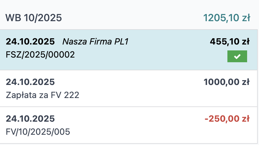 - Rachunek przejściowy – na tym koncie są księgowane transakcje z wyciągów bankowych do momentu ich uzgodnienia.