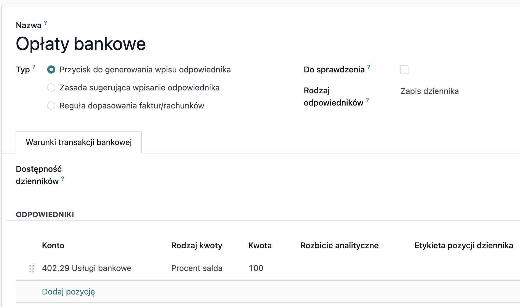 Dzienniki można utworzyć i skonfigurować w Księgowość → Konfiguracja → Dzienniki.